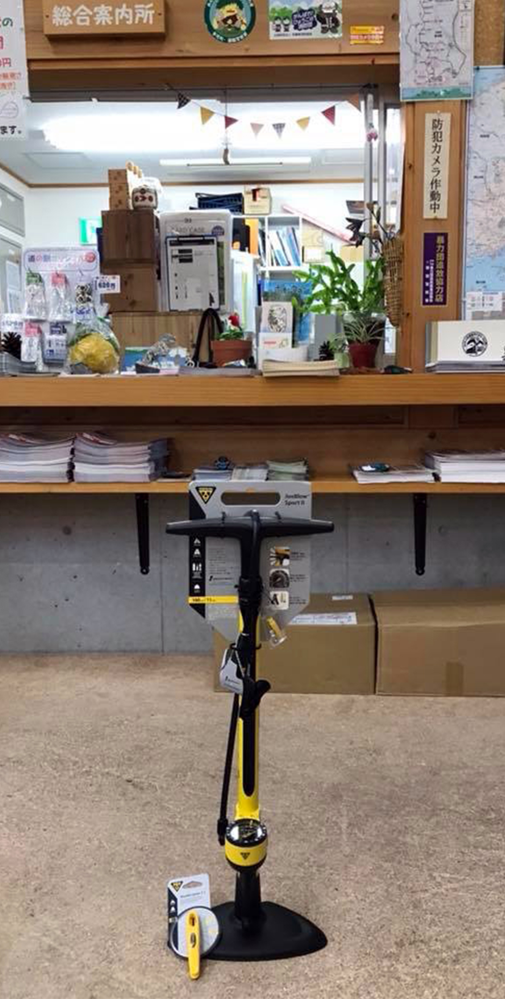 サイクルチューブの販売があり、ポンプとタイヤレバーを貸し出しております。